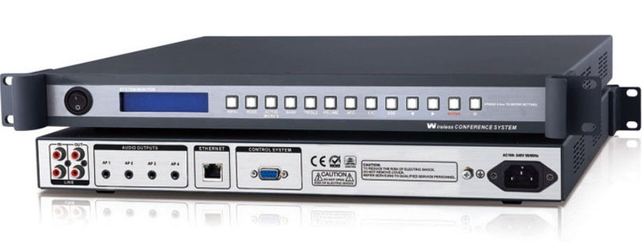 - 具有一路RJ45接口,可直接连接一个无线AP接入器,也可连 接100M网络交换机,无线AP接入器再接到交换机,扩充无线AP接入器数量,即可实现多会场的应用;